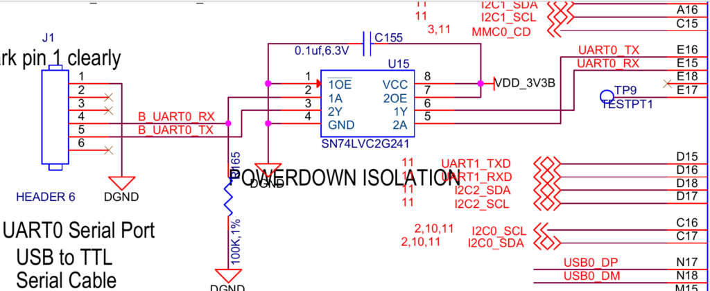 Включив зеленую плату, я увидел по UART загрузку u-boot 2013.04, ядра linux 3.8.13, и прошивки angstrom v2013.06 (на основе старого OpenWRTшного снапшота). Включив черную плату, по UART я ничего не увидел, но user-светодиоды намекали, что плата работает. Достал мультиметр, и увидел КЗ на UART по TX. Благо схема открыта, и я решил проверить, насколько все серьезно. Увидел, что по UART стоит защита — проверил, и да — её пробило. Пришлось заменить перемычкой, после чего UART ожил: