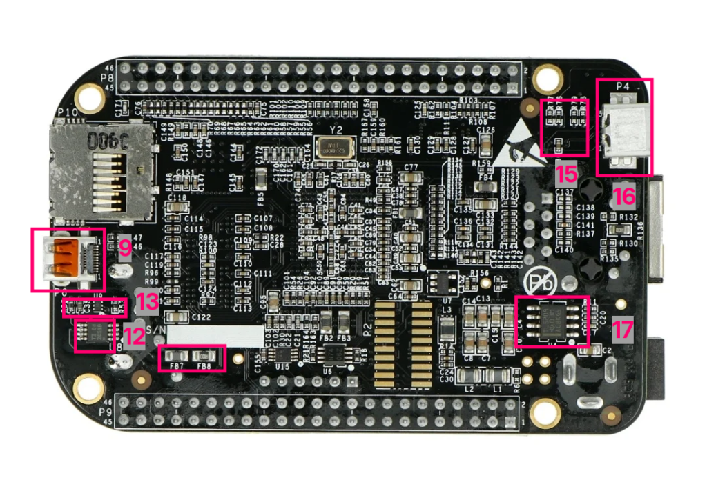 —White от Black отличается SoC AM3359 (вместо AM3358), вдвое меньшим ОЗУ DDR2 (вместо DDR3), отсутствием EMMC и отсутствием MicroHDMI (с HDMI PHY);