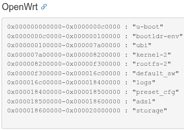 И кстати, если вы еще не шили OpenWRT, но собираетесь это делать + хотите сразу получить полный объем флешки - нет смысла шить OpenWRT дважны. Просто шейте по инструкции выше, но после прошивки маков и до сохранения переменных (saveenv) задайте новую разетку в переменную mtdparts и добавьте её в параметры ядра (в bootargs) согласно инструкциям выше. С OpenWRT закончили.